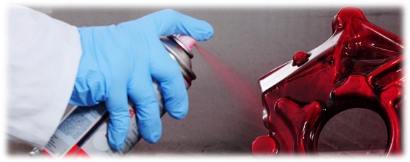 The principle of penetrant inspection is relatively simple. First, the surface of the piece must be cleaned. A layer of liquid penetrant is then applied on the surfaces to be inspected. The penetrant is a colored liquid that easily imbeds itself in cavities such as cracks. Once the product is applied, the inspector gently cleans the surface. At this point, the surface looks clean. Then comes the developer, a product that is applied to the surface and absorbs the penetrant remaining in the cavities of the material. These colored penetrant remains then rise to the surface and highlight the defects of the piece that would have been sometimes very difficult to distinguish with the naked eye.